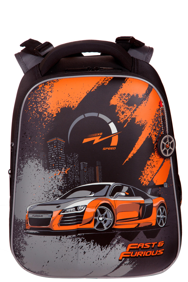 - два больших отделения на молниях. В основном, самом большом отделении расположены жесткие перемычки- вставки, для комфортного размещения тетрадей или учебников. В переднем отделении предусмотрен органайзер с карманом для мобильного телефона, сетчатым карманом для мелочей, отделениями для ручек и карандашей, подвеской для ключей.