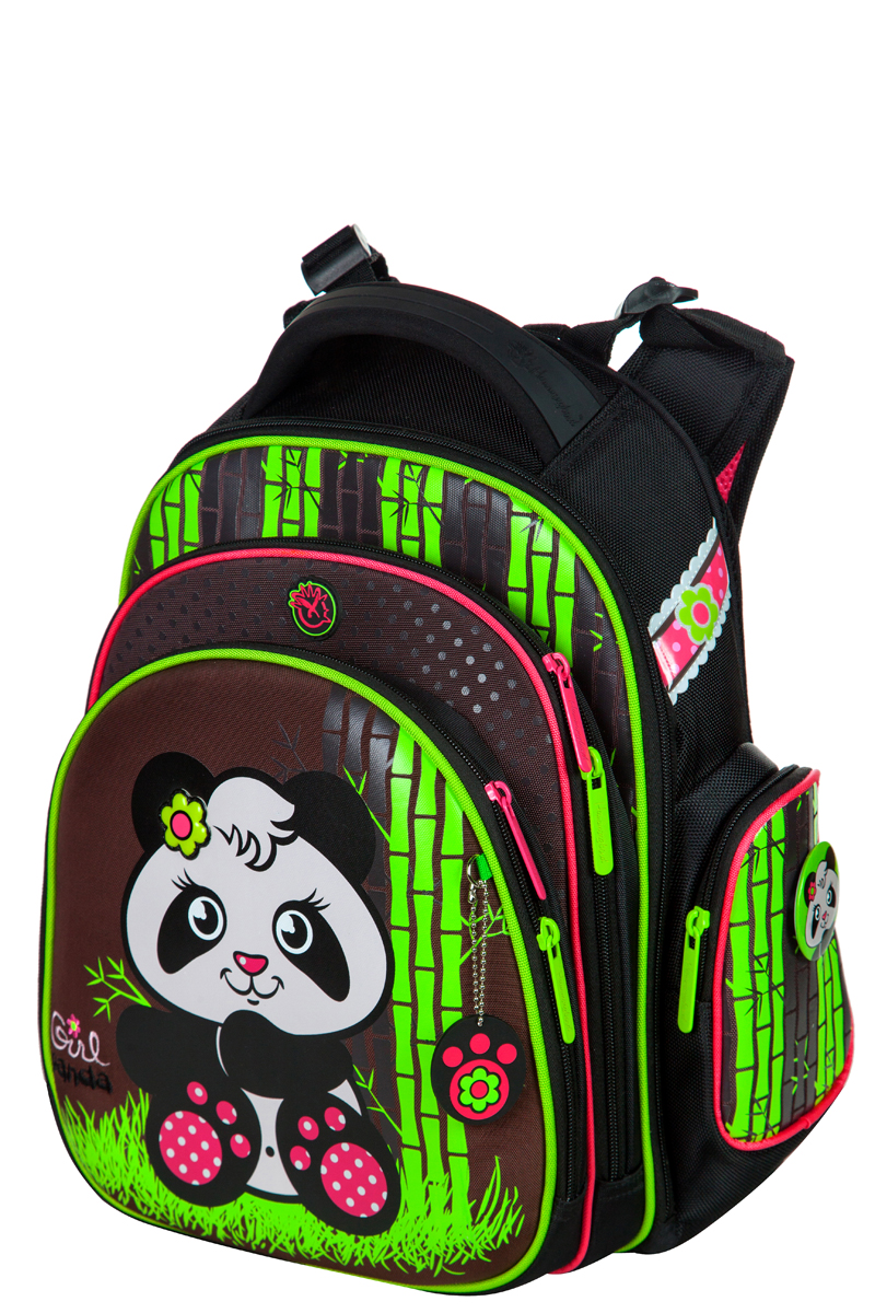 - два больших отделения на молниях. В основном, самом большом отделении расположены жесткие перемычки- вставки, для комфортного размещения тетрадей или учебников. В переднем отделении предусмотрен органайзер с карманом для мобильного телефона, сетчатым карманом для мелочей, отделениями для ручек и карандашей, подвеской для ключей.