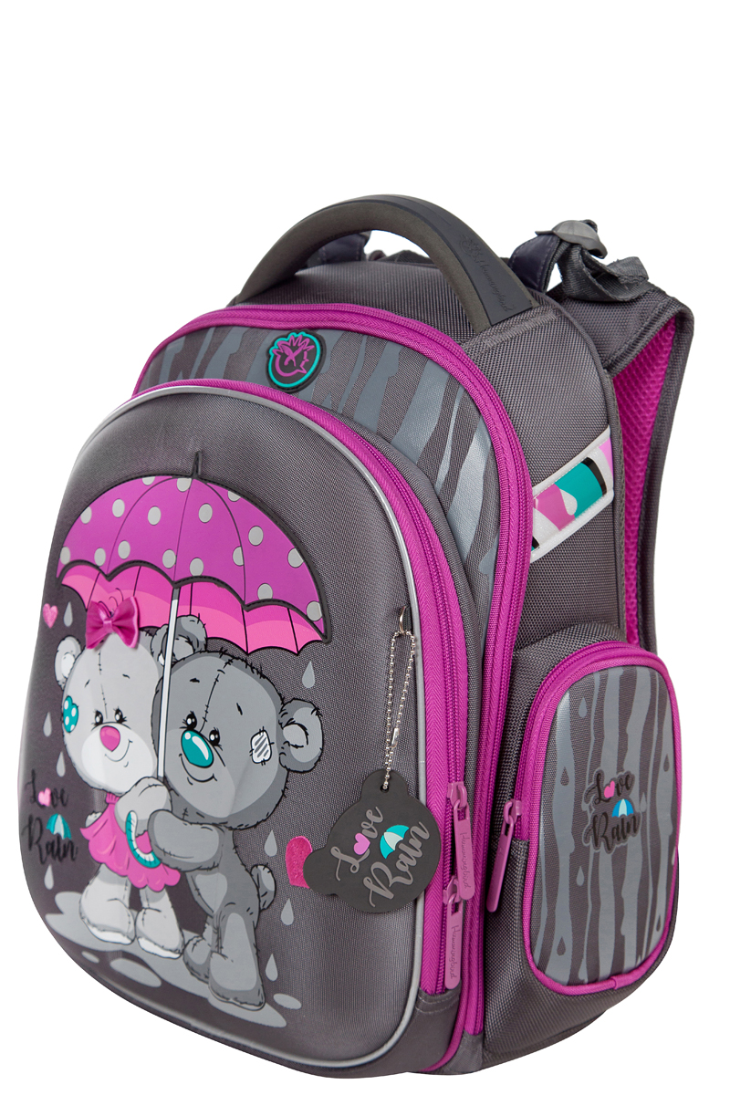 - два больших отделения на молниях. В основном, самом большом отделении расположены жесткие перемычки- вставки, для комфортного размещения тетрадей или учебников. В переднем отделении предусмотрен органайзер с карманом для мобильного телефона, сетчатым карманом для мелочей, отделениями для ручек и карандашей, подвеской для ключей.