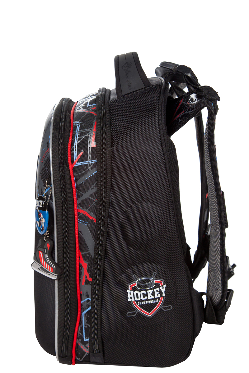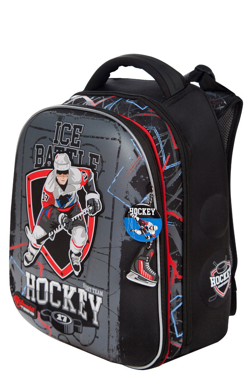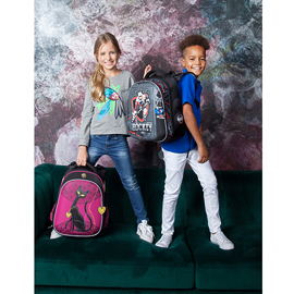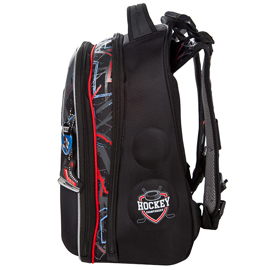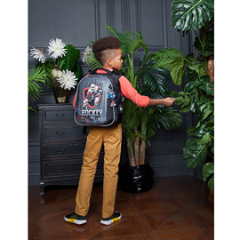 - три больших отделения на молниях. В основном, самом большом отделении расположены жесткие перемычки- вставки, для комфортного размещения тетрадей или учебников. В переднем отделении предусмотрен органайзер с карманом для мобильного телефона, сетчатым карманом для мелочей, отделениями для ручек и карандашей, подвеской для ключей.