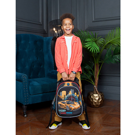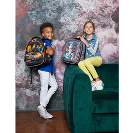 - три больших отделения на молниях. В основном, самом большом отделении расположены жесткие перемычки- вставки, для комфортного размещения тетрадей или учебников. В переднем отделении предусмотрен органайзер с карманом для мобильного телефона, сетчатым карманом для мелочей, отделениями для ручек и карандашей, подвеской для ключей.