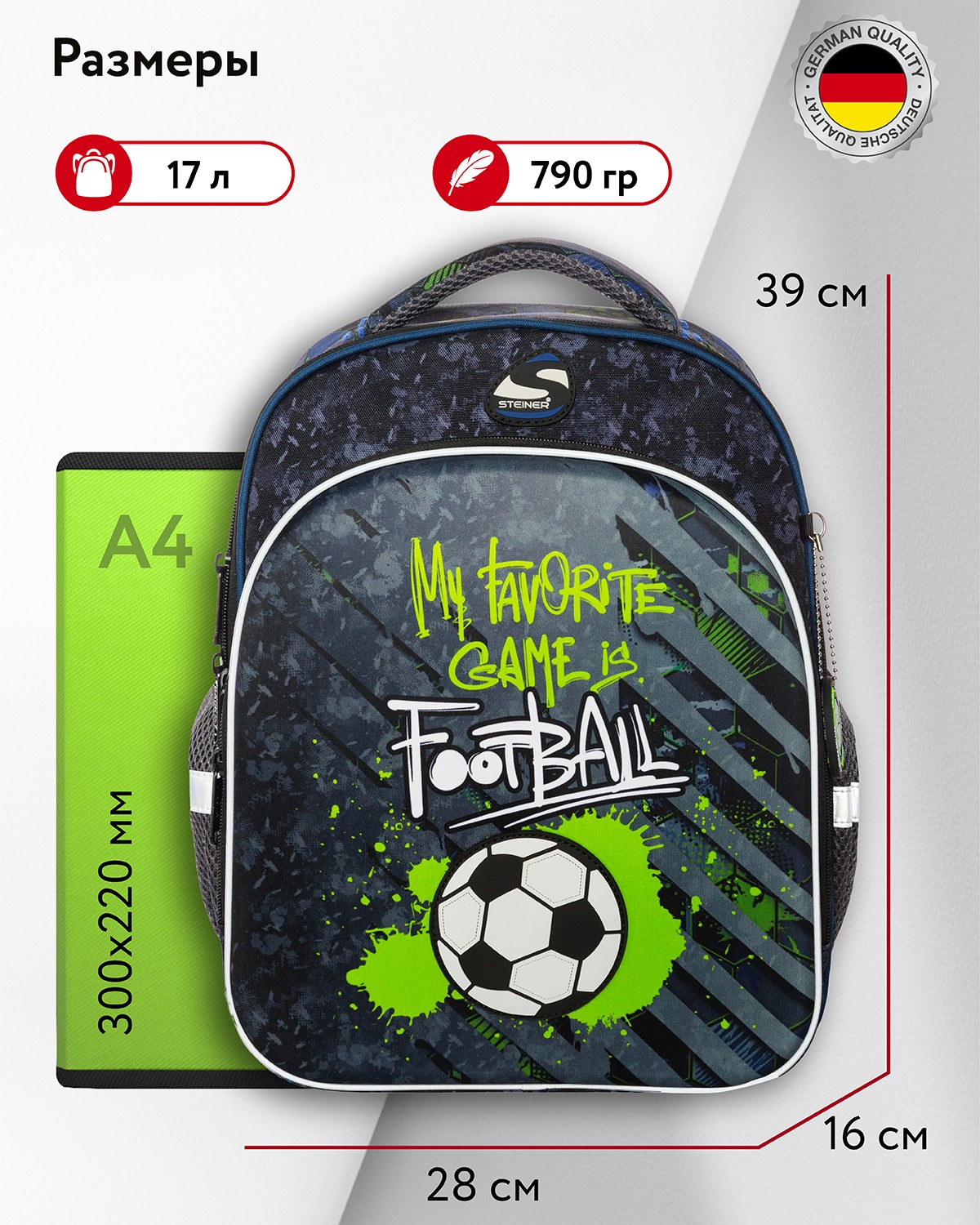 Рюкзак школьный для мальчика 1-4 классов с ортопедической спинкой от известной фирмы Steiner. Под этим брендом выпускается только высококачественная, проверенная временем продукция школьных ранцев и рюкзаков.